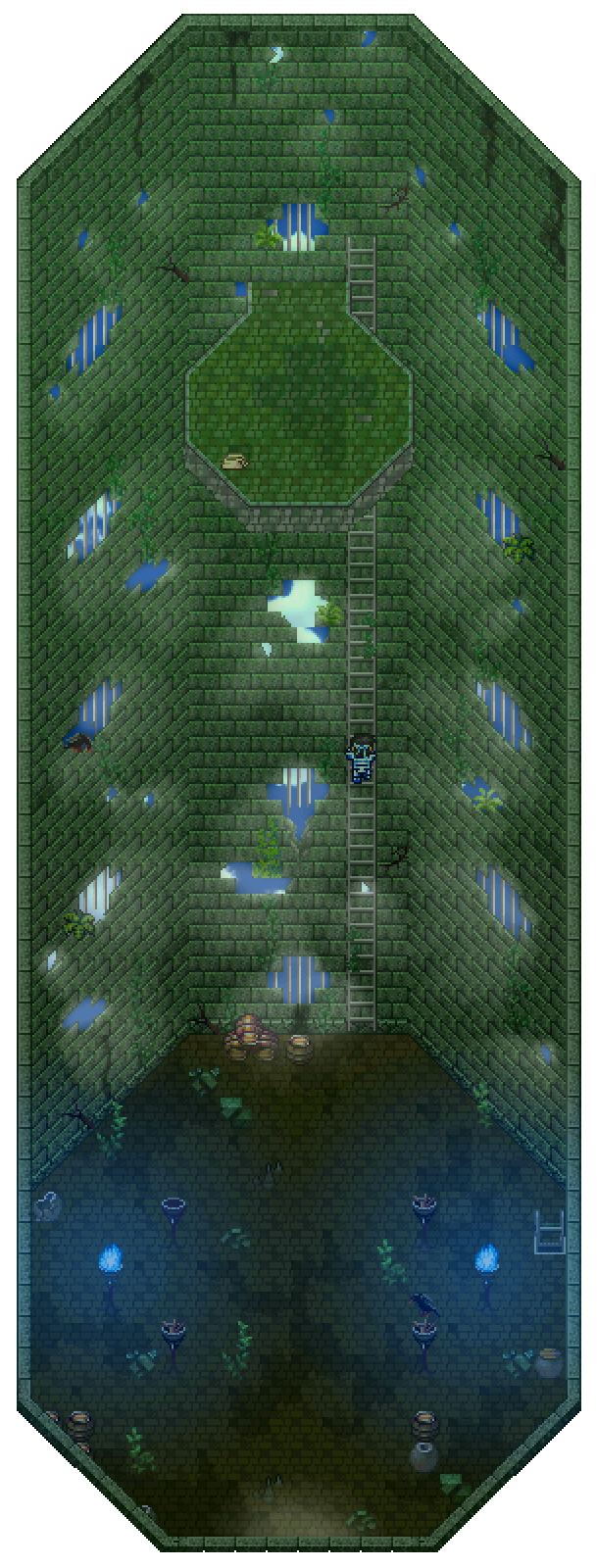 Netter Turm. War bestimmt nicht so einfach, diese Plattform betretbar und "unterkletterbar" zuglleich zu machen. ;) Wenckes Kritik würde ich mich anschließen. Vielleicht würde der Plattform auch ein Schlagschatten gut tun. Außerdem: Ich hoffe du hast den Hintergrund nicht auf autoscroll gestellt, sonst würde wahrscheinlich der eine oder andere Let's Player geneigt sein, es als "fliegenden Turm" zu bezeichnen. :D