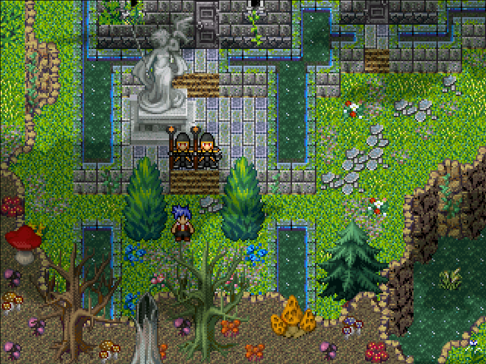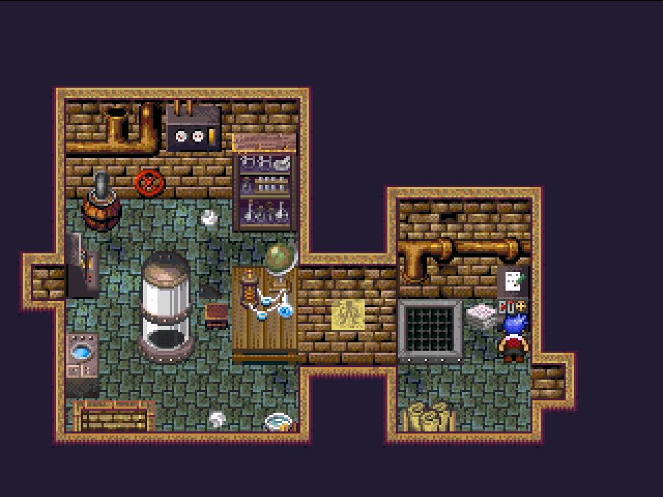 - Teleports schicken den Helden immer an den äußersten Rand der Map. Das ist unpraktisch. Ich würde ihn zumindest mit einem Tile Abstand teleportieren lassen. Anfangs habe ich mich in der Stadt immer verlaufen und wollte daher schnell wieder zurück auf die vorherige Map, aber das ging nur über den "Umweg", indem ich mich einmal von dem Startpunkt aus entferne und dann wieder den Weg zurück zum Teleport laufe. Mach es dem Spieler bitte einfacher ;)