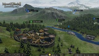 M&B II ist so aufgebaut, dass man quasi eine Weltkarte hat, auf welcher man sich frei bewegen kann und von Ort zu Ort reist. Man bewegt dabei seinen Charakter und seine Gefährten (und die entsprechende dazugehörige Truppe) und trifft dabei auf der Karte ebenfalls auf andere Truppen, welche unterschiedlichen Gruppen angehören können (Diebe, Händler, Fürsten/Soldaten, usw.). Trifft man auf andere Gruppen, so erscheint ein Auswahlfenster, über welches man verschiedene Aktionen durchführen kann (mit der Truppe sprechen oder falls es Diebe sind, diese direkt angreifen etc.). Für Dialoge wechselt man dann in eine Nahansicht, kommt es zu einem Kampf befindet man sich auf dem Schlaftfeld, welches offen ist (mit unsichtbaren Grenzen, welche einem aus den Kampf flüchten lassen, sollte man sie nicht innerhalb von 10 Sekunden wieder verlassen).