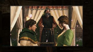 Das schöne an dem Spiel ist, dass man bei allen Orten 2 Optionen hat. Man kann etweder direkt über die Weltkarte über ein Dialogfenster die Aktionen auswählen und oder durch die Liste der anwesenden Personen scrollen und mit ihnen interagieren - oder aber man betritt die Orte. In diesem Fall kann man die Städte, Verliese, Schlösser, Tavernen etc. frei begehen. In manchen Quests ist dies sogar erforderlich, wenn man beispielsweise Personen finden muss, die sich verstecken.