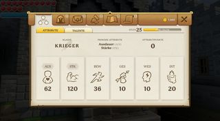Neben der Fähigkeiten gibt es auch noch ein allgemeines Level des Charakters. Wird dieses erhöht, erhält der Charakter Attributs und Fertigkeitspunkte, die verteilt werden können.