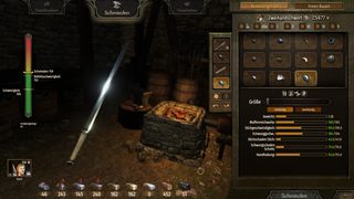 Gerade das Schmiedesystem legt hier sehr viel Wert auf Details. Wenn man sich ein Schwert schmiedet hat man die Auswahl über viele verschiedene Griffe, Klingen, Verzierungen usw.. Dadurch gibt es Unmengen an verschiedenen Kombinationen, wie man sich die Waffe gestaltet.