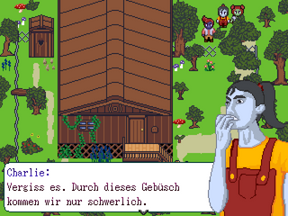 Davon abgesehen, wirkte das Spiel insgesmt leider recht übereilt. Wenn ich mich recht entsinne, sagtest du ja, dass du kurz vor knapp noch mal alles über den Haufen geworfen hattest. Das merkt man leider. Die Story nimmt sich wenig Zeit, Dinge auszuschmücken, sie ist doch sehr schnell: "Oh, ein Haus!" "Lass mal einbrechen!", "Oh, ein komisches Buch", "Oh nein, Dämon!" "Oh gut, Hexe!" usw.